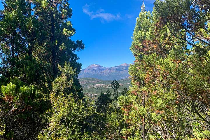 Se pueden apreciar flora autóctona patagónica como ñires, cipreses, mutisias, helechos, aljabas, etc.